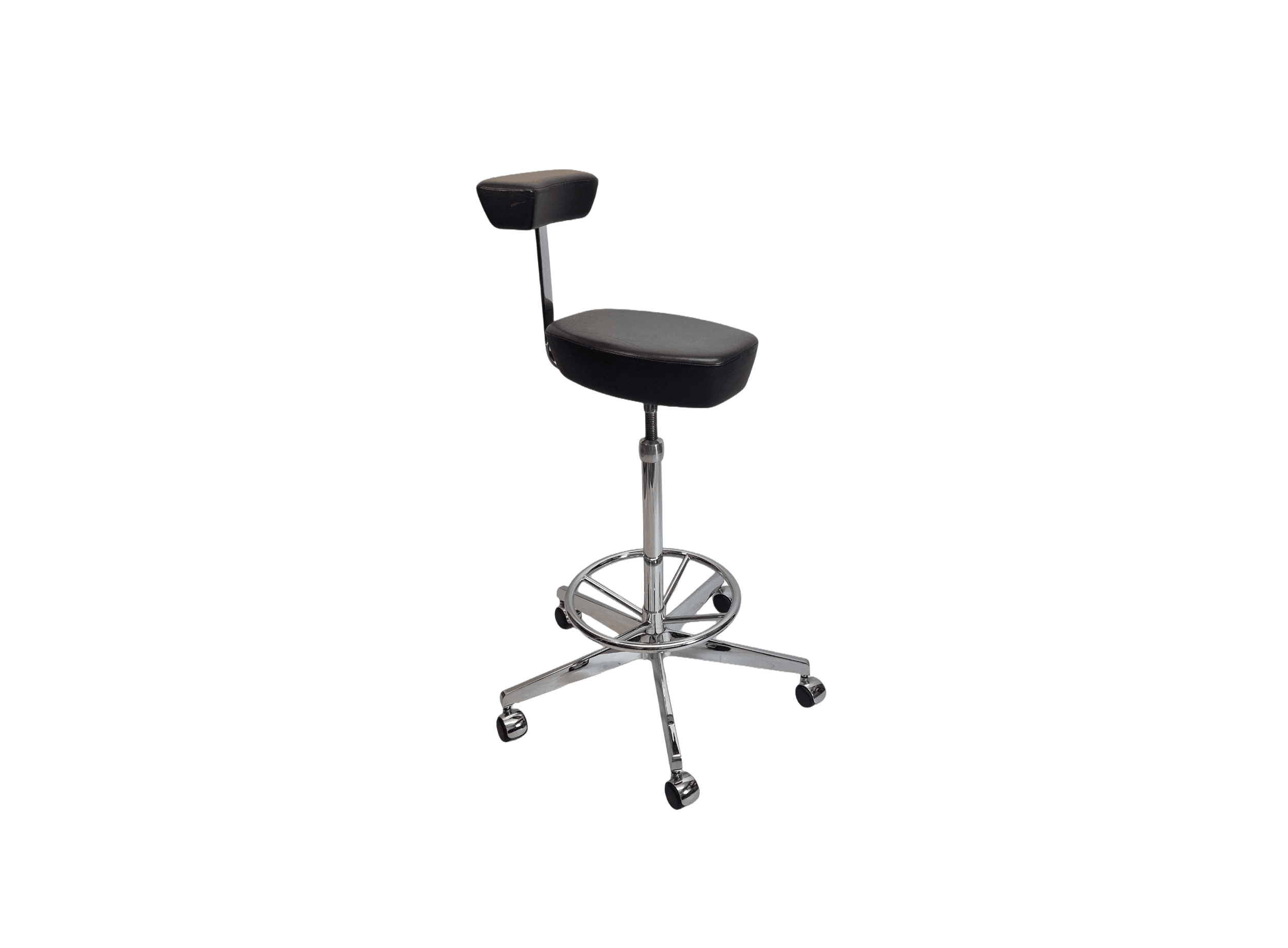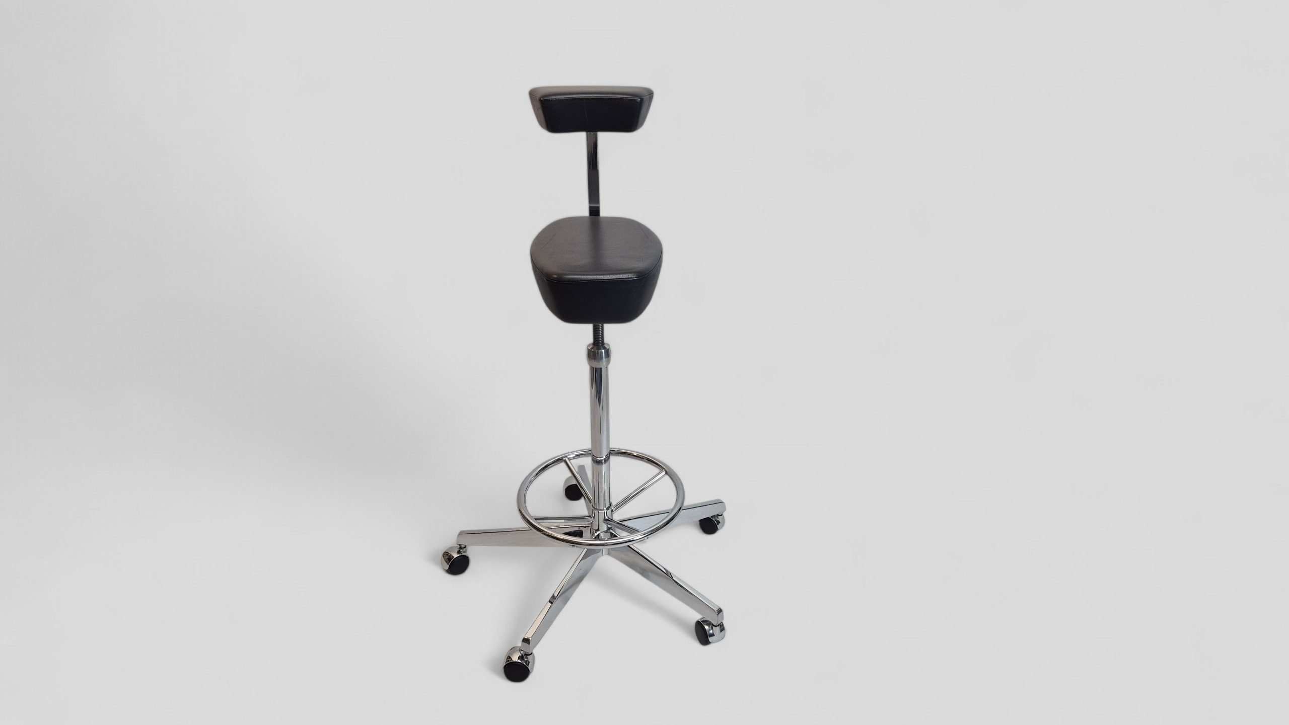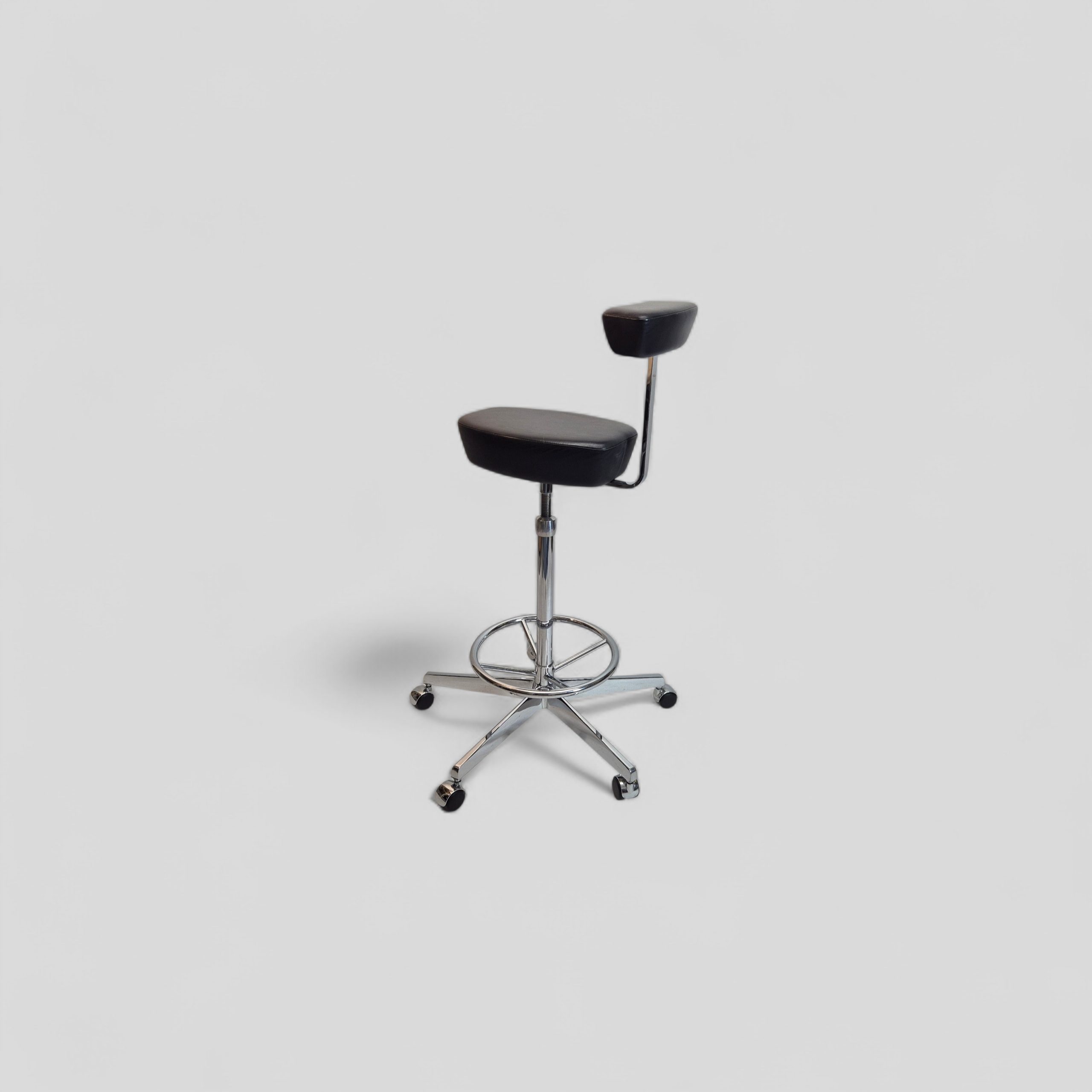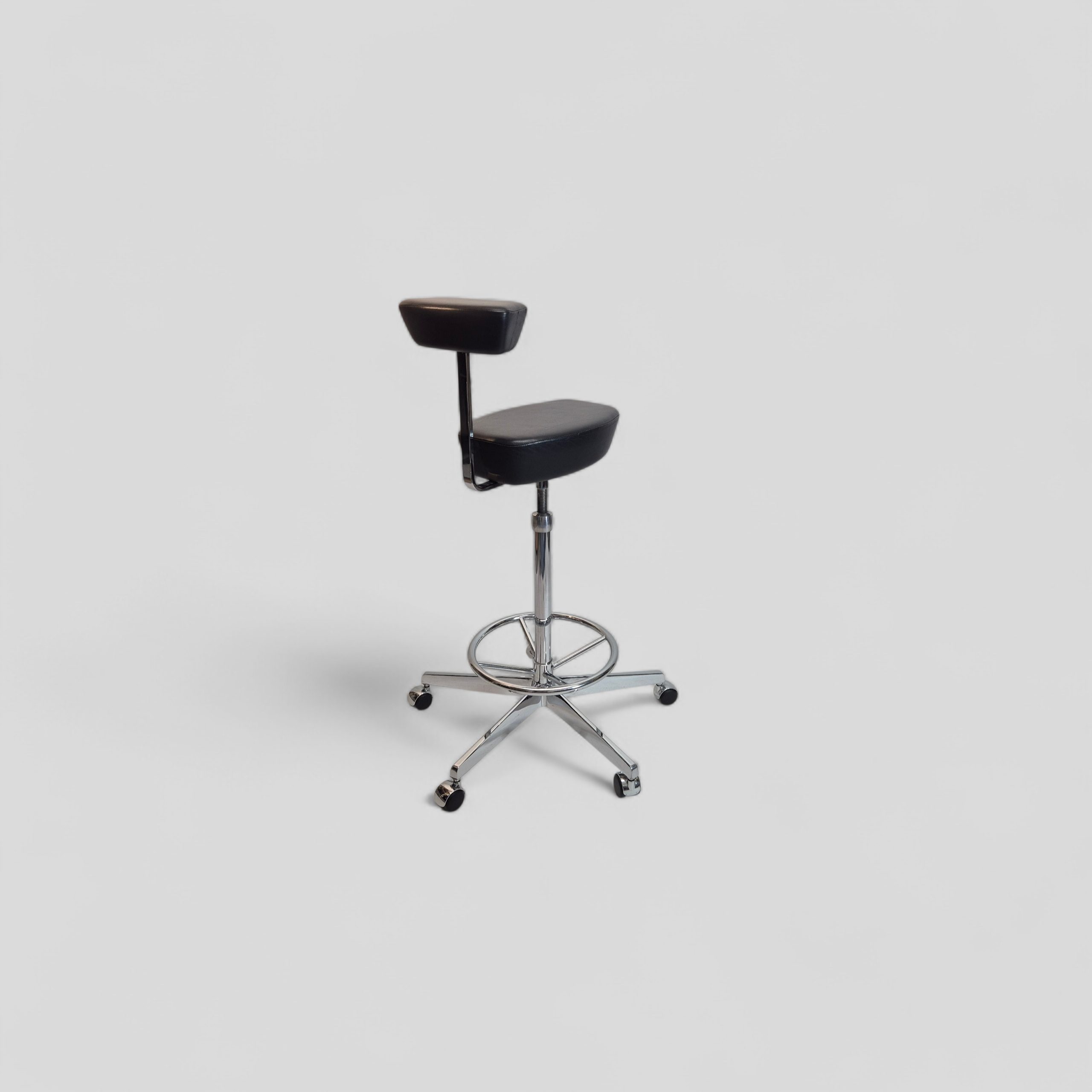 Schwarzes Leder, verchromtes Stahlgestell, höhenverstellbar über Spindel — der Nelson Perch ist ein beliebter Vitra-Klassiker. Der Neupreis bei Vitra liegt aktuell bei ca. €1.690 pro Stück — hier für €390, versandkostengünstig.